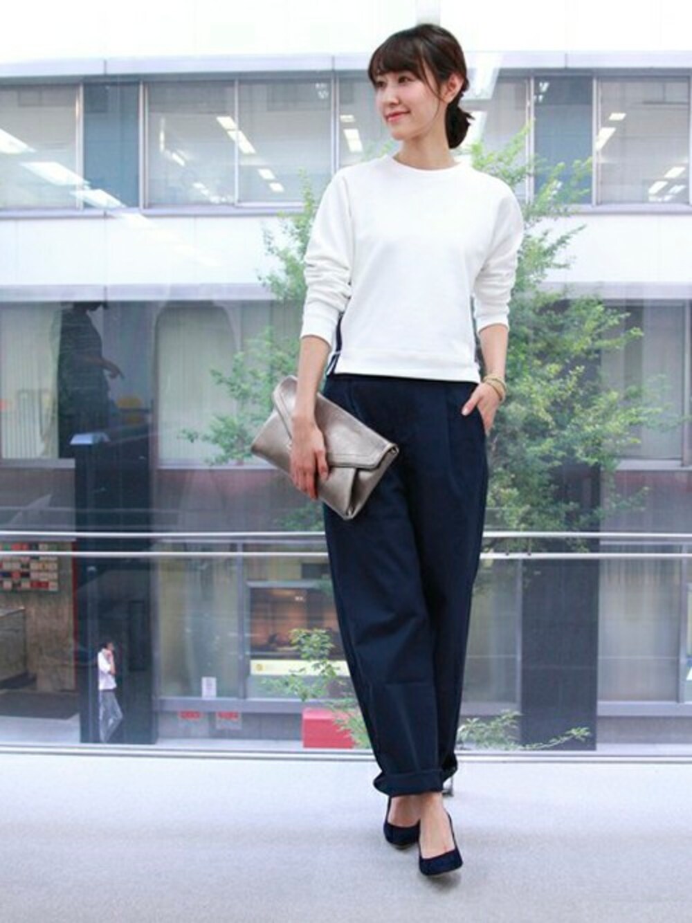 ワイドなパンツには、コンパクトな丈感のトップスを合わせてスタイリッシュなコーディネートにしました。 パンツは、チノパンツのような感覚で穿いて頂けます。 いつものボトムをワイドに変えるだけで今年顔に。