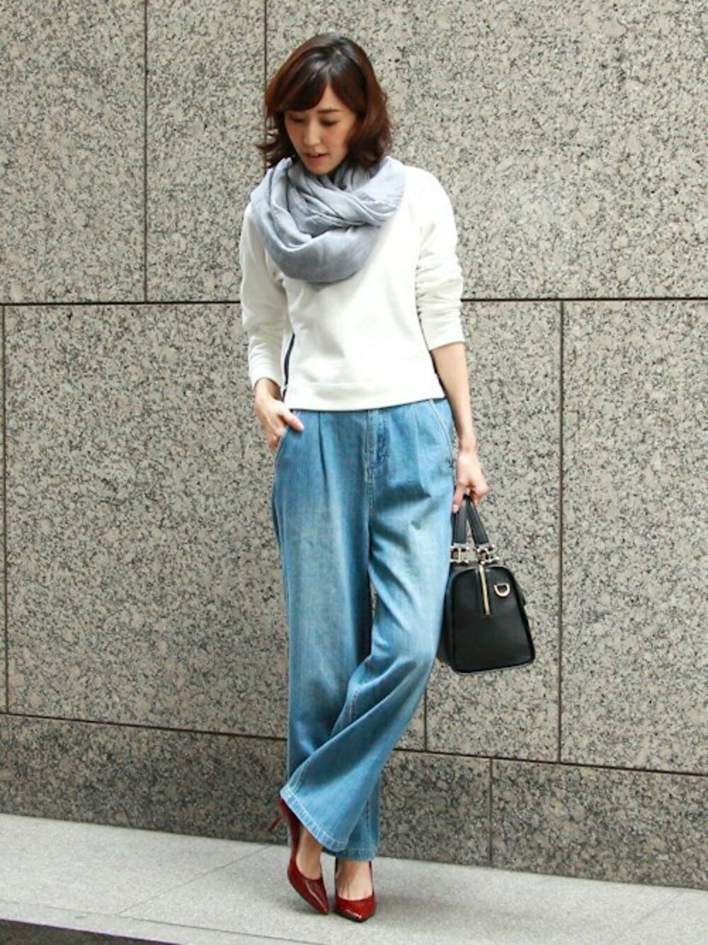 今季トレンドのワイドパンツとサイドラインがポイントのプルオーバーを合わせました。 スポーティーなイメージには、小物で上品さを演出◎ モダルーのボストンバッグでコーディネートをしめました。