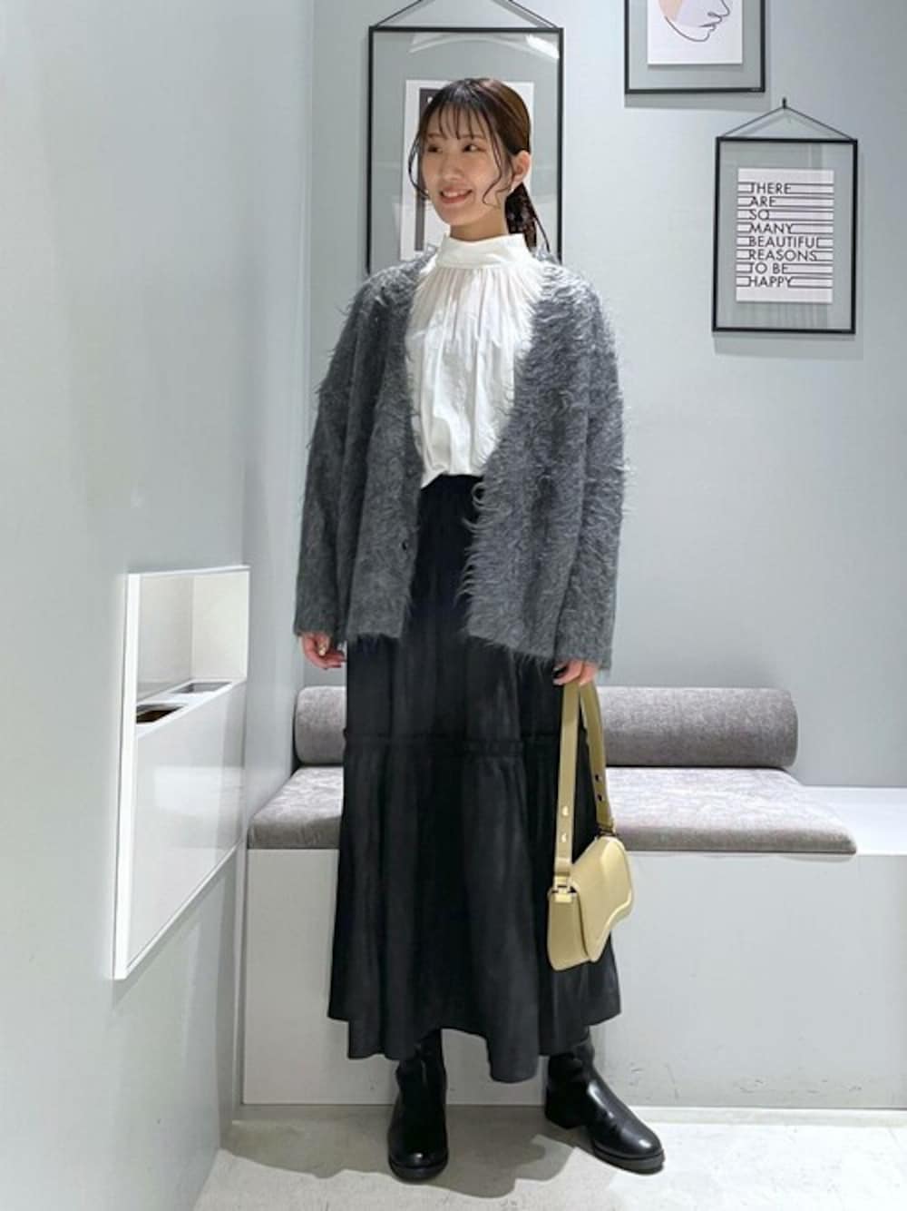 【トップス】ボウタイブラウス / M(1) リアルバイしたアイテム🤤 前後着用可能となっております! ゆったりしたサイズ感ですが落ち感があるので着膨れしません✨ ボリューム袖が可愛くて、インした時にはボリューム袖のお陰で身幅もすっきり見えしますよ! 今の季節なら1枚で、寒くなったらカーディガン羽織ったり、ニットやスウェットを上から着て、リボン出すスタイルも可愛い🥰 【カーディガン】ダブルボタンカーディガン / FREE otonaMUSEコラボのカーディガン! ふわふわニットファーです。 毛先がぴょんぴょんしたデザインで羽織るだけで可愛い✨ どんなトップスに羽織っても合うので使いやすいですよ💡 私はチャコールをリアルバイしました! ボトムでもスカートでもバランスよくまとまるのでめっちゃ使えます🙏 【スカート】ティアードスカート / M(1) リアルバイしたスカート。 ウエストオールゴムで、とても軽くて楽な履き心地です。 動くと揺れるシルエットがとっても可愛いです🤍 ざっくりニット合わせも可愛いしピタッとしたトップス合わせも○で何にでも合う万能スカートです⭐️
