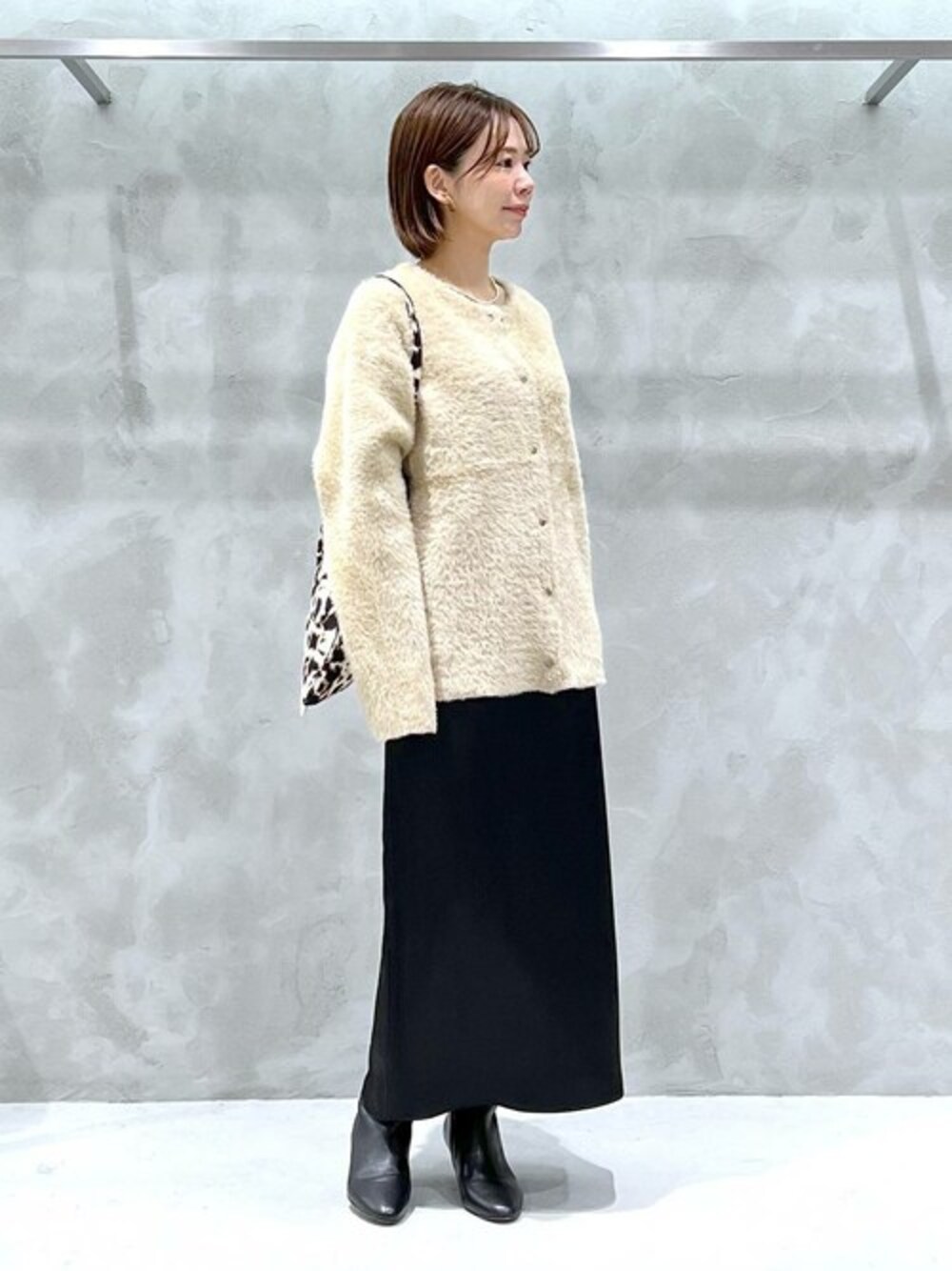 トップス F ゆったり トレンド感満載のファーニットのカーディガン🤎 コートよりも軽い着心地のアウターっぽいカーデです😍 前ボタンを全て閉めることで一枚着としても着れます✨✨ 裏地がファーではなく異素材なので、袖通しもしやすい😌この上からさらにアウターも着れます😍 スカート S 素材感がサテン調でとっても上品な印象のスカート💗 長いシーズン着られる素材感❣️真冬はタイツやスパッツを履いて頂ければ寒さ対策できます✨✨ ウエストは後ろ側にゴムが入っているので履き心地も抜群! タイトすぎないので私の気にしている大きなお尻もカバーしてくれました☺️❗️ 一つ持っていればトップスはカジュアルでも綺麗めでも万能に合わせられるのでオススメのスカートです❗️