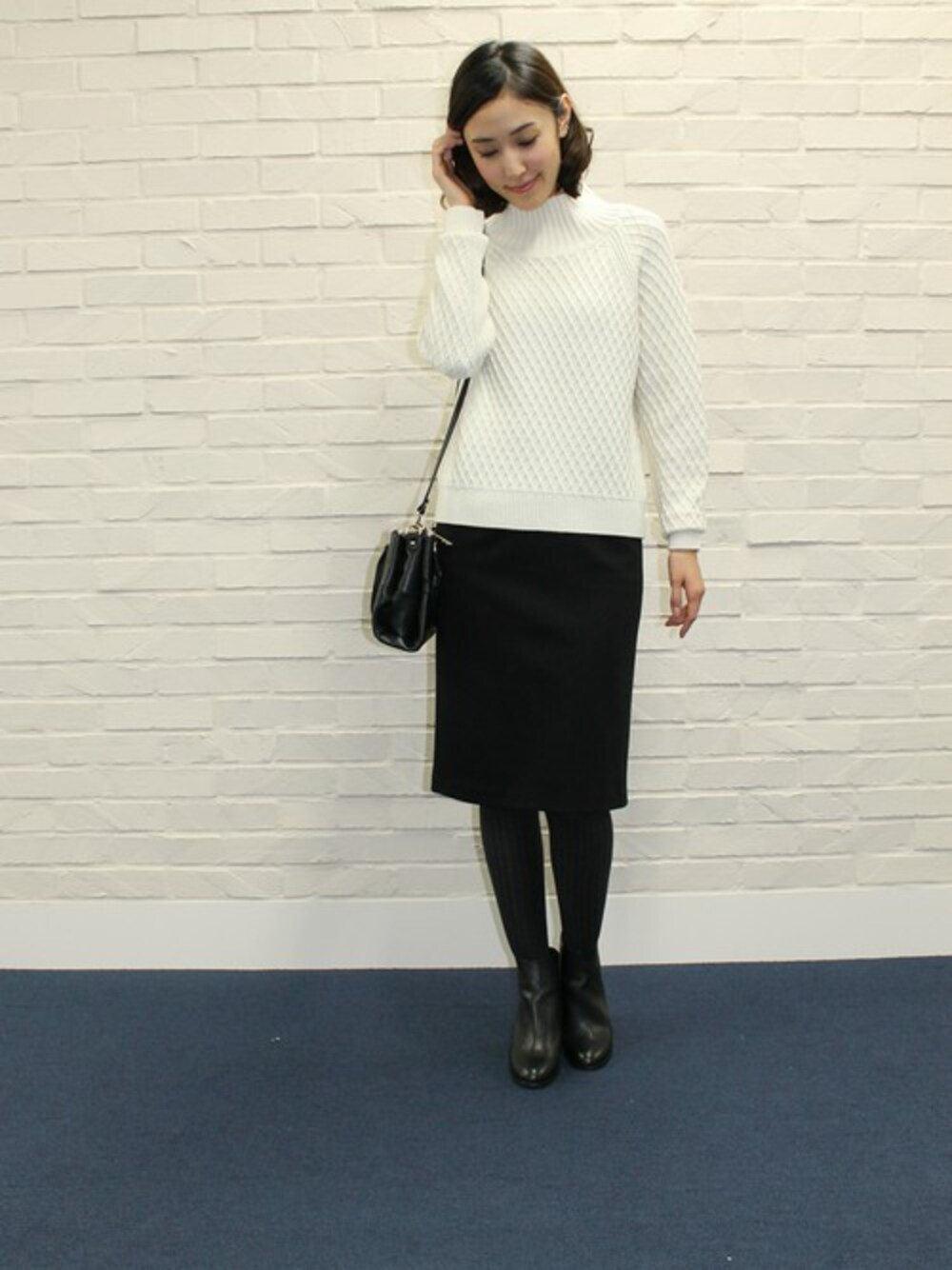 冬のマストアイテムホワイトニットのコーディネート。スカートで女性らしく◎