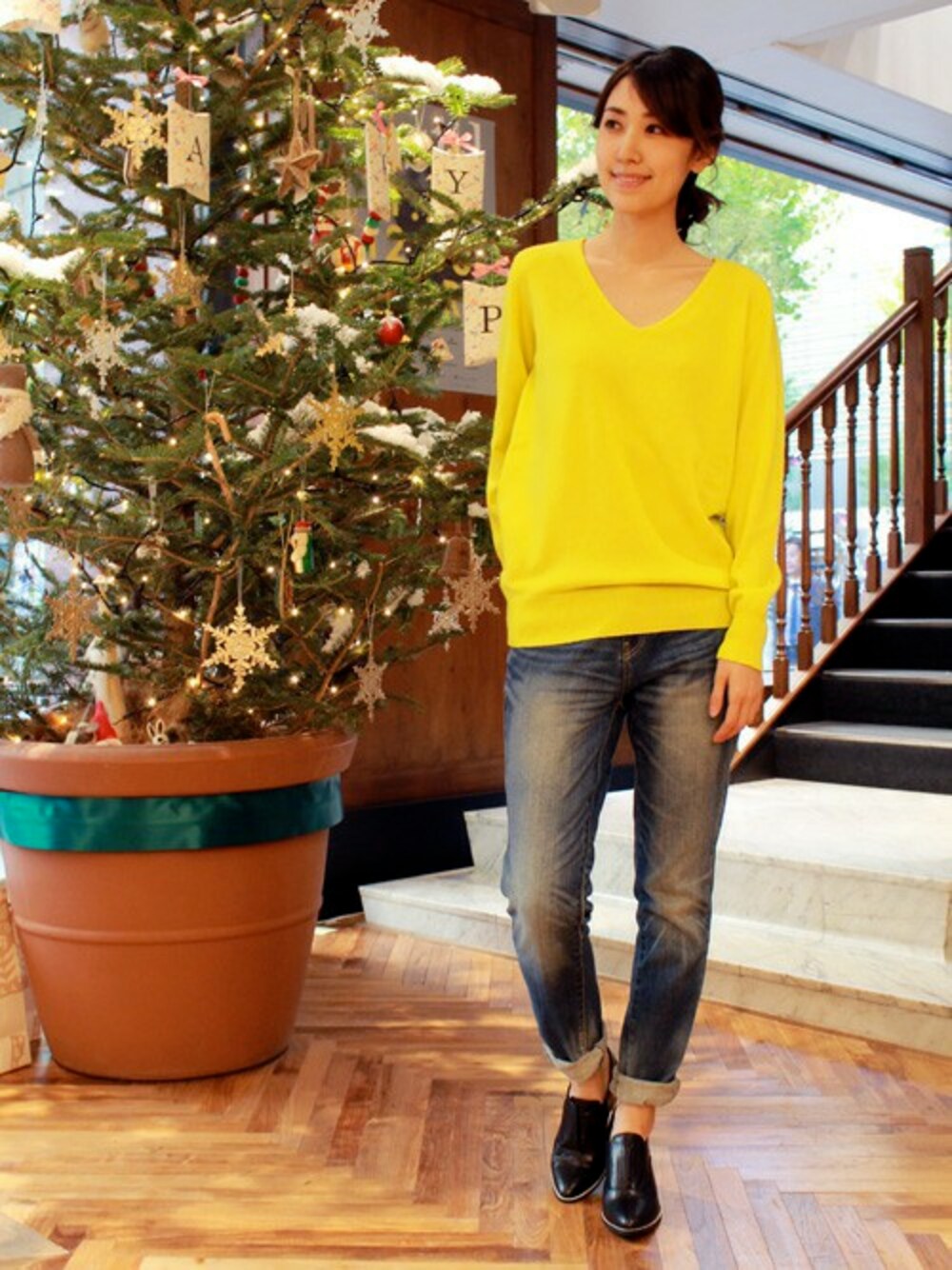 カシミヤならではの上質な肌触りときれいな発色がポイントのニット★ダークカラーが多くなりがちな冬コーデのアクセントに、アウターの中でもしっかり主張してくれます。