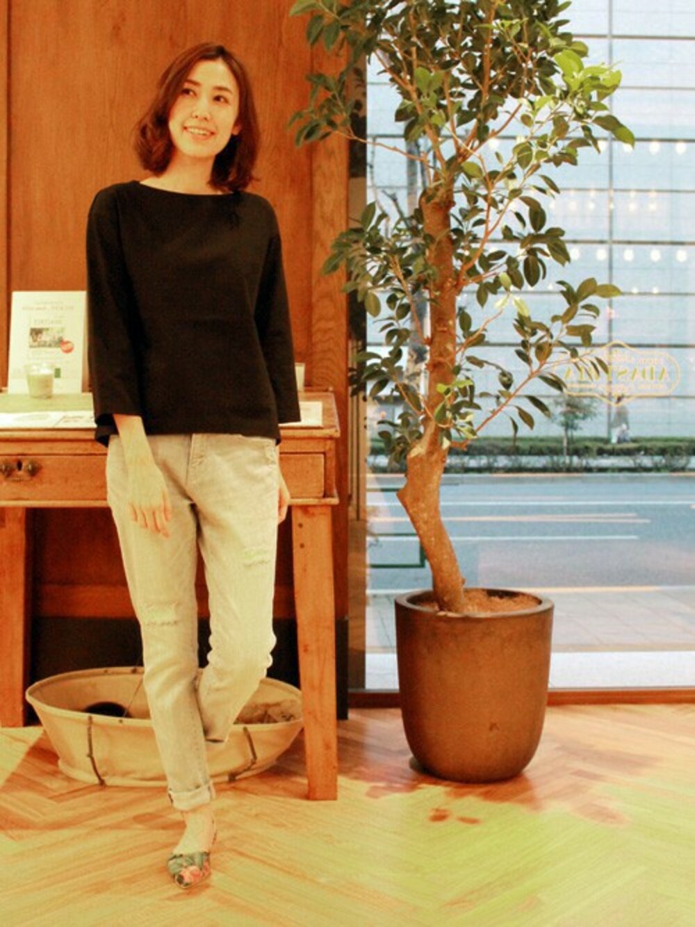 VERYコラボアイテムのプルオーバーにトレンドのダメージデニムを合わせました!
