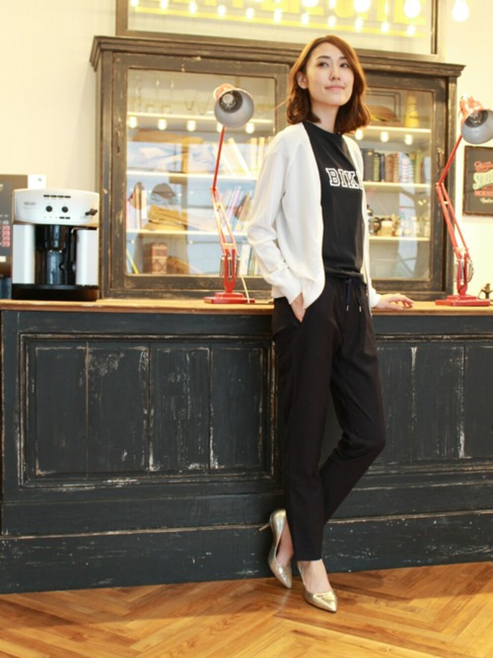 カジュアルなロゴTにきれい目なパンツを合わせてバランスを取りました。 おとなカジュアルコーディネートです。