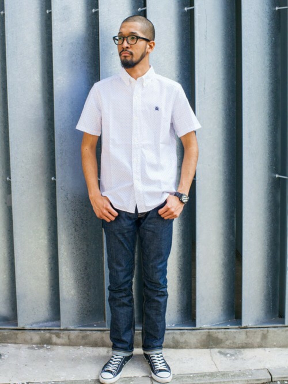 生地の中でも上質な"オックスフォード"を用いた、DOT柄のハーフスリーブボタンダウンシャツ。 ブルーデニムと合わせシンプルながらも清潔感あるコーディネート。