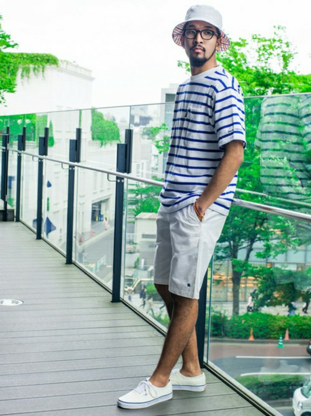 肌触りの良い上質なコットンを使用したボーダーTシャツをメインに、爽やかな白を基調としたアイテムでまとめたコーディネート。