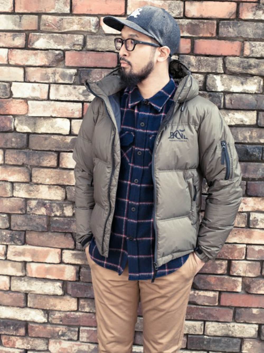 表地に防水透湿素材、中綿にはヨーロッパ産のホワイトダックダウンを贅沢に使用した登山用シュラフメーカー"NANGA"別注のダウンジャケット。 インナーは毛足の長いシャギーウールを使用したネイビーカラーのCPOシャツを挿す事で、カジュアルながらも洗練されたコーディネートに。