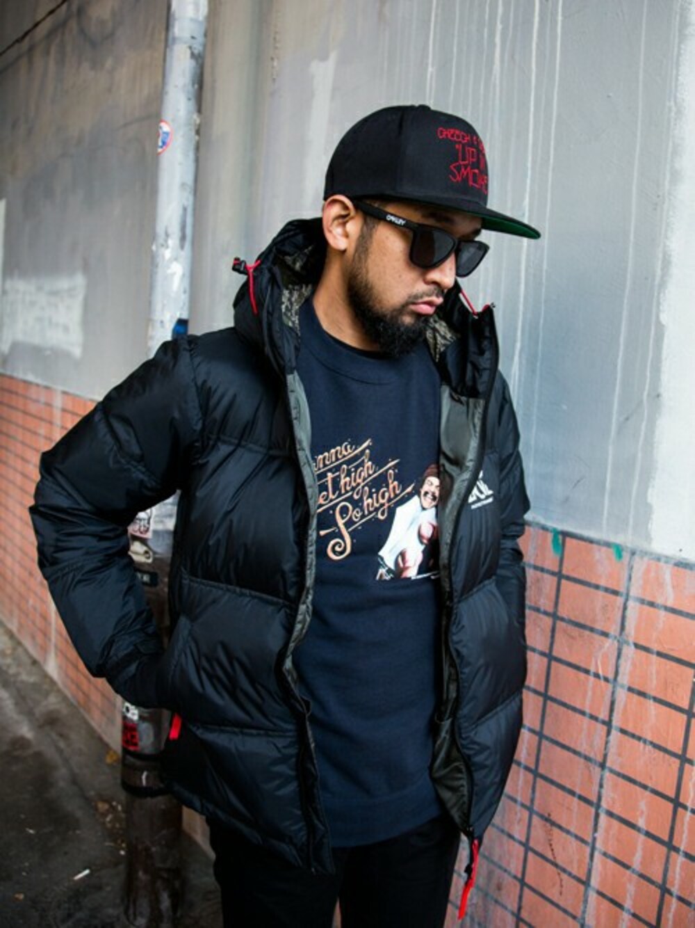 名作コメディ映画「UP IN SMOKE 」とBACK CHANNELがコラボレーション。 同映画のグラフィックを落とし込んだクルースウェットとキャップに、国内で唯一日本製の登山用シェラフを製造しているNANGAに別注をかけたダウンジャケットを組み合わせた真冬のストリートスタイル。