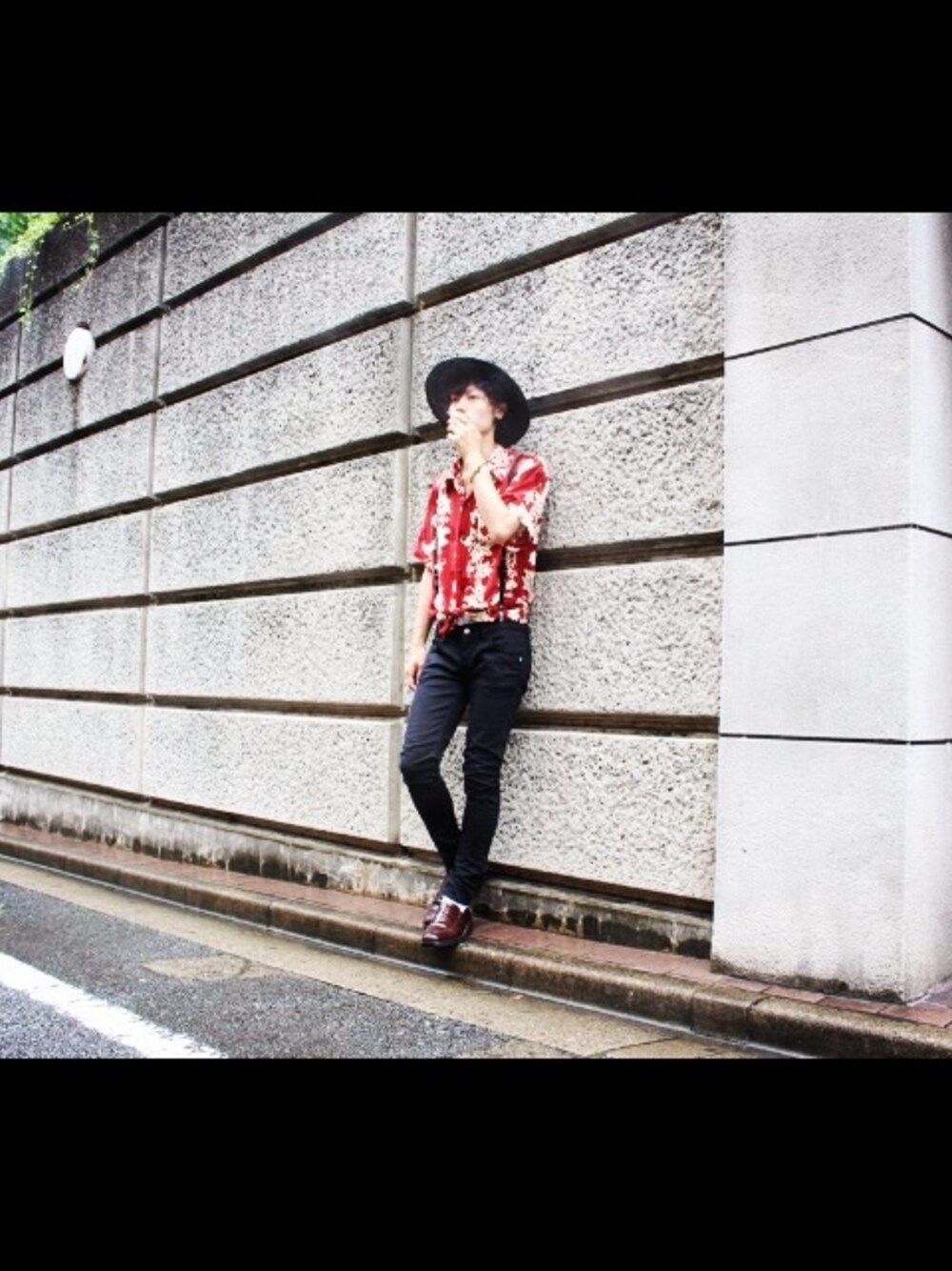 Hat:used Aloha shirts:60'sVintage Leather suspenders:Vintage Skinny pants:used Vamp Loafer:Bass Cigarette:Lucky Strike