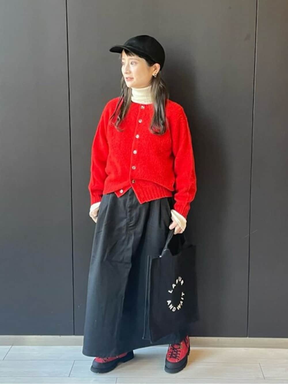 【サイズ感】 カーディガン:ジャスト スカート:ウエストジャスト 【スタイリングポイント】 カーディガンのボディとボタンの配色に合わせてコーディネートしてみました。 パラブーツのトレッキングシューズは軽くて履きやすく、レトロで可愛いです。