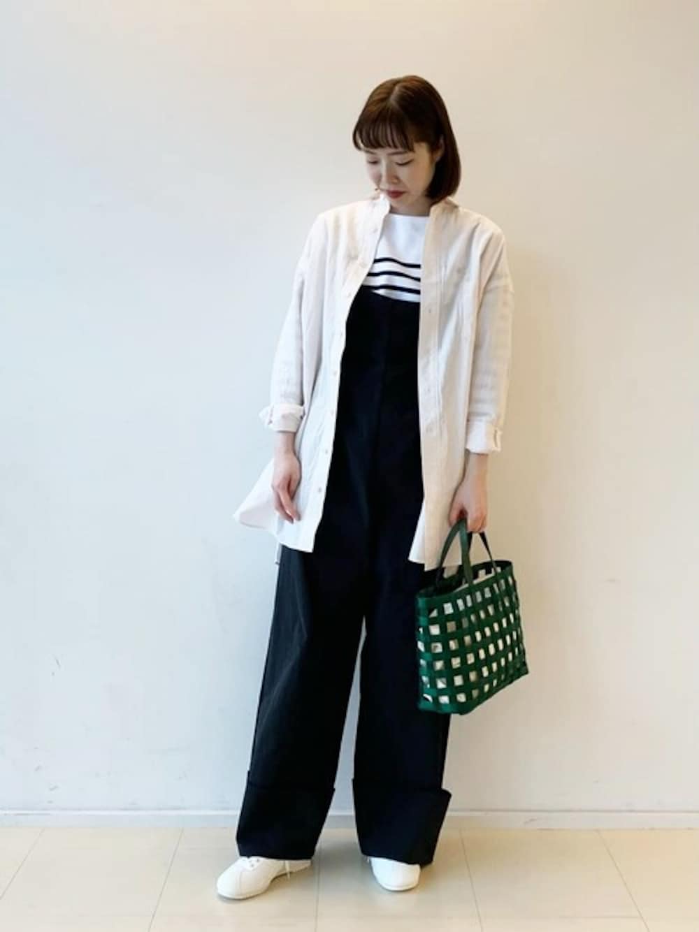 【サイズ感】 カットソー:ジャスト オールインワン:太め、長さ調節可能 シャツ:ゆったり バッグ:※中の袋は付いていません 【スタイリングポイント】 春のピクニックを意識したコーディネート◯ パンツスタイルですがお腹周りも楽なオールインワンにORCIVALの定番ラッセルをチョイス! 羽織っているシャツも薄めのピンクなので抵抗なく着ていただける色味です!