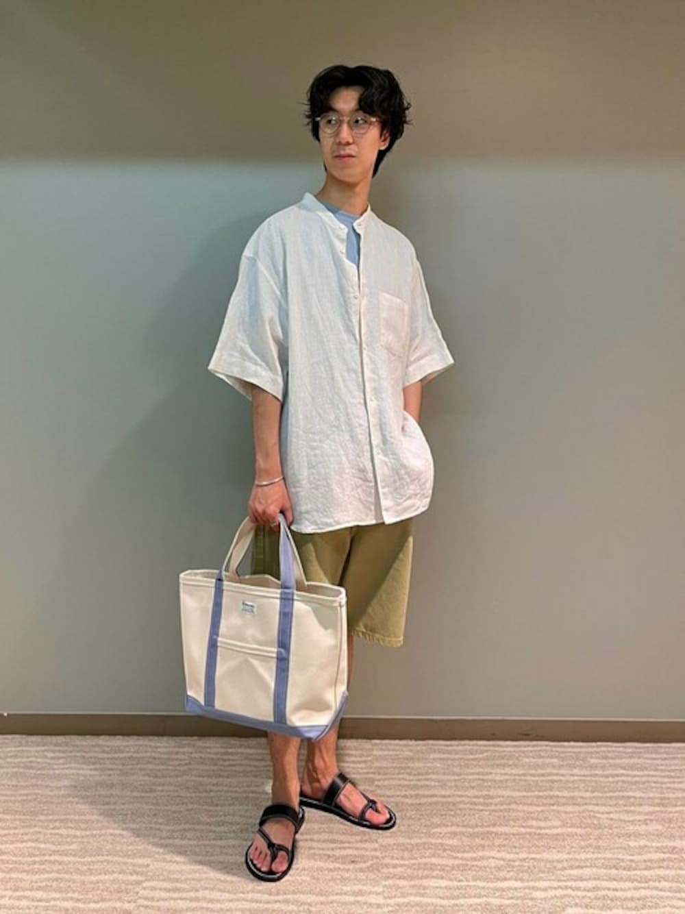 Bshopスタッフ(Bshop STAFF)のシャツ/ブラウス「ORCIVAL | リネン バックギャザーシャツ STRIPE MEN」を使ったコーディネート