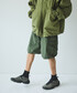 ジャケットにショーツを合わせたスタイリング、ミリタリーのアイテム合わせとカラーリングで統一感を出してみました。 078 CITEのミリタリージャケットは60年代のアフリカ軍ブルゾンをベースに作成されたアイテム。男心くすぐる無骨なデザインとありながらも軽い着心地のギャップが特徴です。 SEDAN ALL-PORPOSEのショーツは、リップストップ生地のナイロンで軽くてしっかりとしているため幅広いシーンで活躍すること間違いなしです!裾のドローコードでシルエットを変えて楽しめるのも嬉しい1着です。