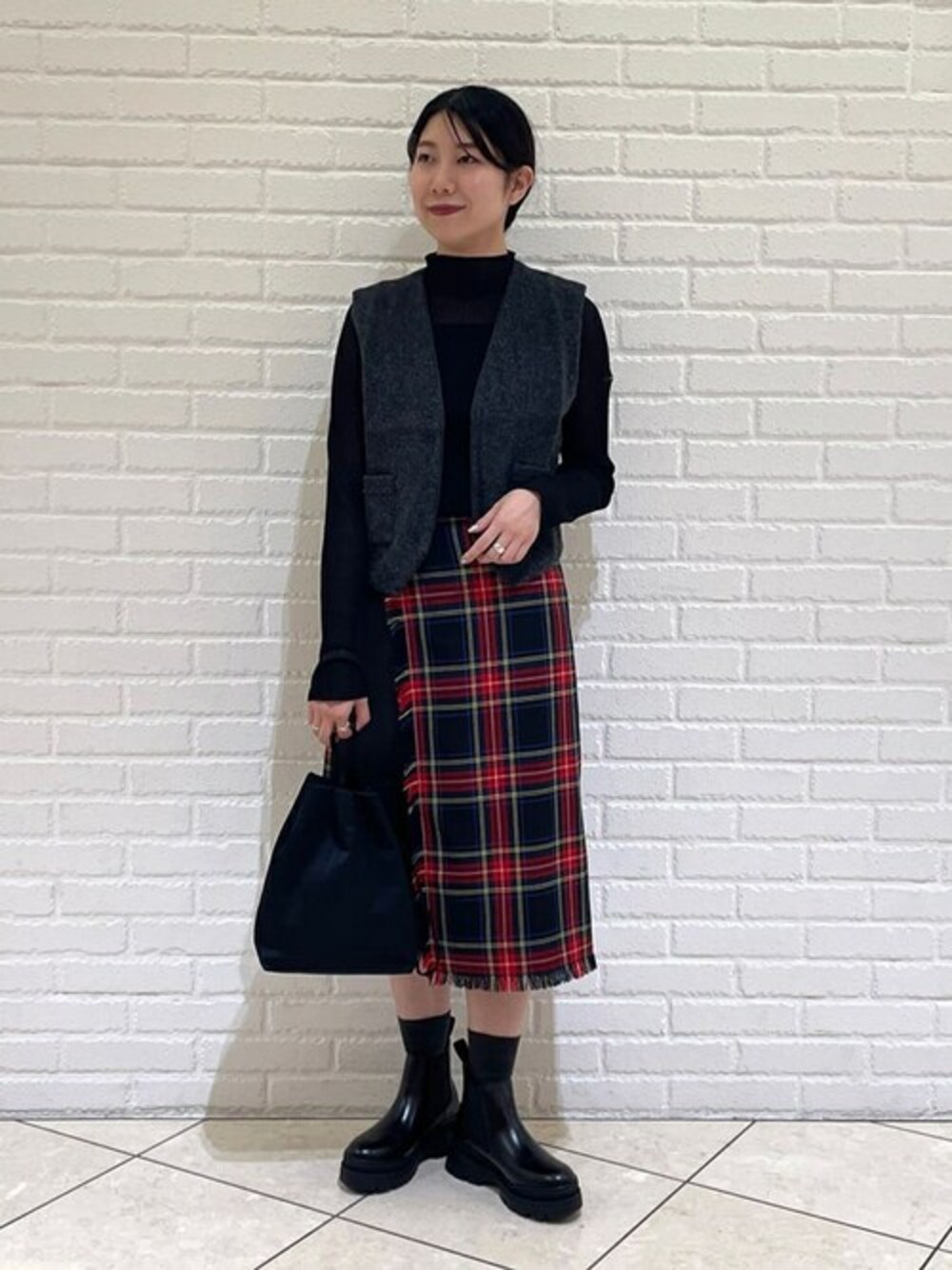 定番のラップスカートをかっこいいテイストでスタイリングしております。 可愛い雰囲気になりやすいスカートも、合わせ方や色合いで楽しみ方が増えるので、是非よければ参考にしてみてください!