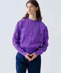 A MENDAの発色の良いパープルのカラーニットを使って全体的に寒色系のカジュアルなスタイリングでまとめました。