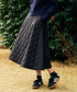 今回は綺麗な発色のニットカーディガンを主役にしました。 ニットカーディガンはERIBE(エリベ)のウール ショートカーディガンです。 何色もの糸を使って編まれたカラフルなニットは着ていると気持ちも温かくなります。 ボタンの部分に裏地が付いており、ボタンホールが広がりにくい作りになっているため長く愛用できるアイテムです。 こちらのニットは繊維長の長いメリノウールが使用されており一枚で着用しても肌触りはチクチクしないのですが、差し色+顔色を明るく見せる目的でAURALEE(オーラリー)のHIGH GAUGE SHEER RIB TURTLE NECK L/S TEEを合わせました。 ニットの色からピンクを拾ったのもポイントです。 スカートはGymphlex(ジムフレックス)のキルティングスカートです。秋冬のトップスの厚さ・重さに負けないアイテムですので、上下で季節感がバラバラになることを防いでくれます。それでいて軽量で着心地が良くデイリーに活躍するアイテムです。 ご参考になりましたら幸いです。 ぜひ店頭にてご覧ください。