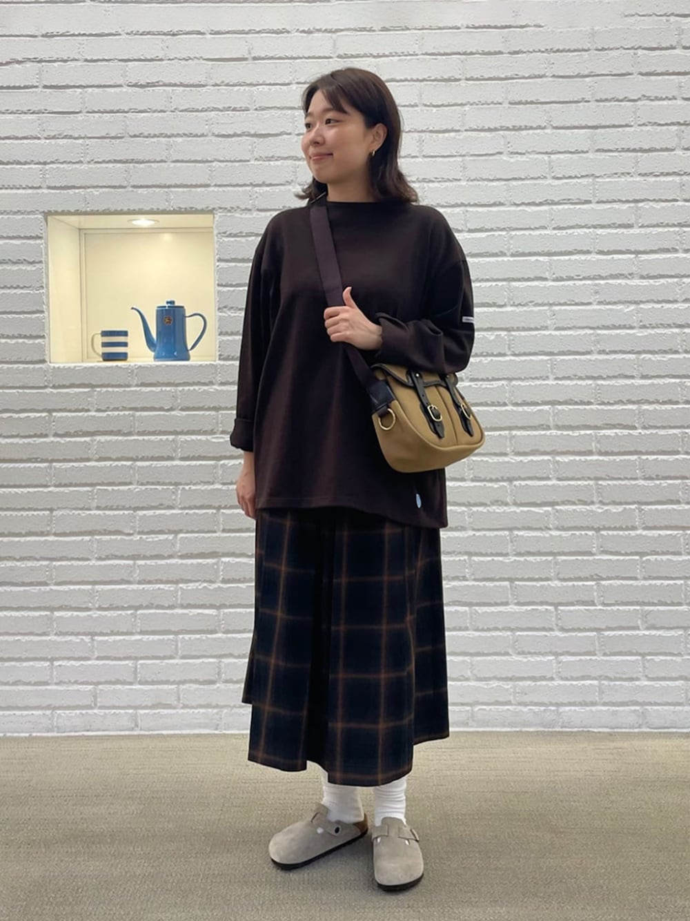 【サイズ感】 トップス(ORCIVAL) サイズ:3(メンズ品番) 毎年定番のワイドTシャツ 首元の開きが狭く、中のインナーを気にせず着ていただける1枚!女性の方がメンズ商品で大きめを着るのもとてもおすすめです◎ ボトムス(nicholson & nicholson) サイズ:36 秋らしいブラウンチェックのタックスカート コットンナイロンなので肌触りもドライタッチで、光沢感もあるので様々なお洋服に合わせやすいです◎ バッグ(Brady/NORFOLK) カラーがかわいく、大きすぎず小さすぎずのサイズ感もとても使いやすいバッグです。 シューズ(BIRKENSTOCK) サイズ:38 人気のBostonがついに入荷! 見た目もかわいく、秋冬はカラー靴下と合わせるのがとてもおすすめです。 【スタイリングポイント】 秋らしいブラウンコーデを組んでみました。 暑さもまだありますが、そろそろ秋支度いかがでしょうか! ブラウン以外にも秋らしいカラーの洋服がたくさん入荷してきておりますので、ぜひご覧ください。