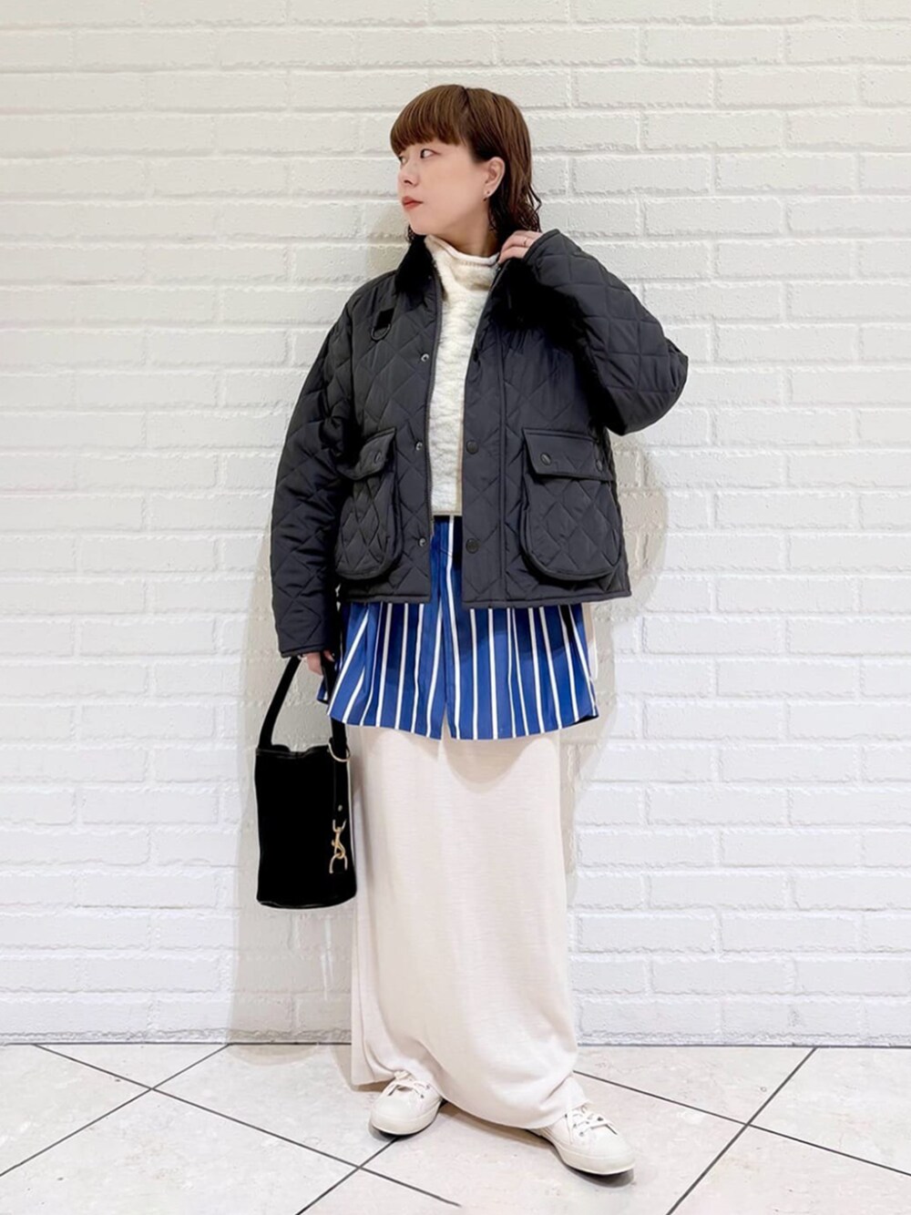 【アウター】 私は154cmですが、着用感は骨盤くらいの着丈になります。 ショート過ぎないすっきりとした丈感なので、小柄な方でもバランス良くご着用いただけます◎ 身幅や袖幅も余裕があるので、厚手インナーやレイヤードスタイルの上にも楽々羽織ることができるのも嬉しいポイントです。 秋から真冬、春まで長く活躍する万能アウターです! 【シャツ】 オーバーサイズでお尻まですっぽり隠れる着丈です。 スクエアカットなので、バランスが取りやすい点が良いなと思いました! コットン素材なので通年着回しができるところもありがたいです◎ 【ベスト】 着丈が短いので、オーバーサイズシャツとの合わせにぴったり。 袖口が広く、袖幅の広いインナーももたつかずに合わせられます。 ふわふわな生地なので、優しい着心地で首元まであたたかく、これからの時期にたくさん着回したいアイテムです◎ 【スカート】 ピタッとし過ぎず程よいフィット感のシルエット。 生地に伸びがあるのでとても着やすいです! 着丈は154cmの私でギリギリ引きずらない程度です。 少しウエストを上げて着るのが個人的にはおすすめです。 【スタイリングポイント】 オーバーサイズな合わせでも上品に見えるアイテムで合わせました。