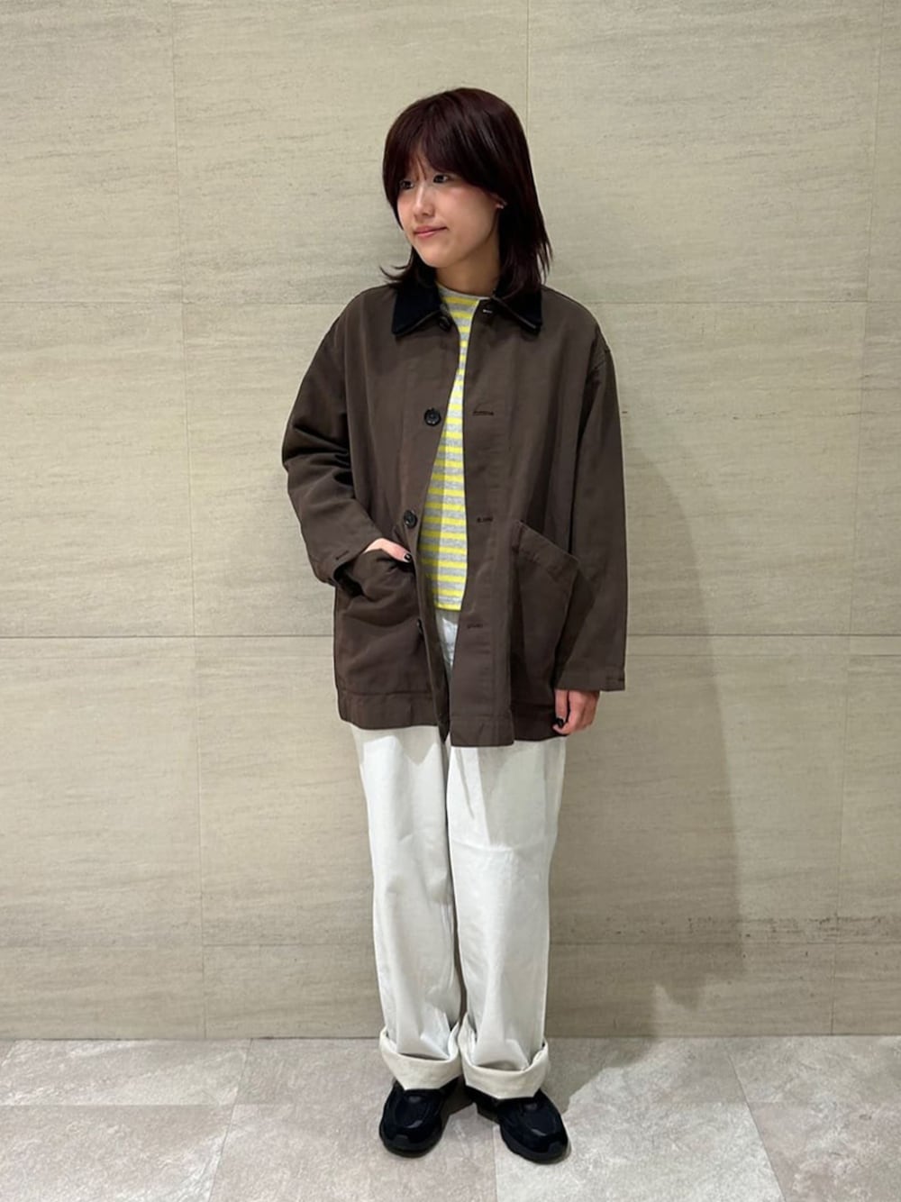 【サイズ感】 アウター:UNFILのアウターはワンサイズで、下にゆったりしたトップスを着ていても上からさらっと羽織って頂けるサイズ感です。 トップス:身幅が広く袖もたっぷりした作りなので、とても動きやすいです。スカートと合わせていただいても可愛いです。 パンツ:身長167㎝で、サイズ36を着用しています。裾は2回折り曲げてちょうど良い長さです。シンプルな白デニムを探されている方にはぴったりなアイテムです。 【スタイリングポイント】 UNFILの新作アウターを使ってコーディネートを組んでみました。実はこのアウターの襟は、取り外し可能なので、その日の気分によって表情を変えられるのも嬉しいポイントです。 ボトムに白を持ってくるだけで、一気に春らしくなるのでとてもおすすめです!