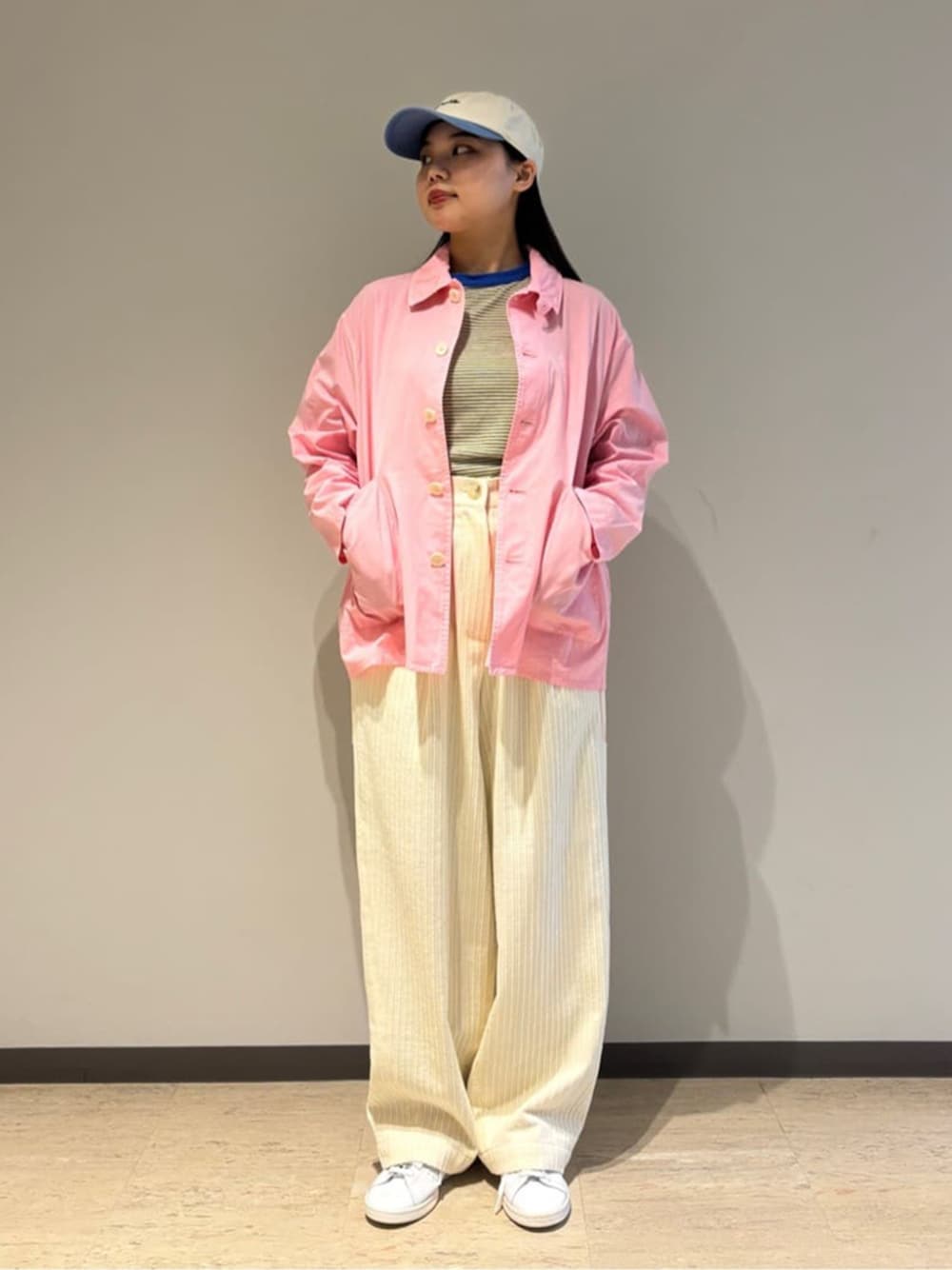 【サイズ感】 ◯トップス スッキリしています。 コットンならではの柔らかさでストレスなく着ていただけます◎ ◯ジャケット 少しゆったりとしたシルエットです。 襟も立てられるので、アレンジ可能です! ◯パンツ ウエストにゆとりがあり、テーパードシルエットです! 暖かく柔らかいコーデュロイ素材です◎ 【スタイリングポイント】 鮮やかなピンクのアウターをメインに、春先取りのスタイリングを意識しました。
