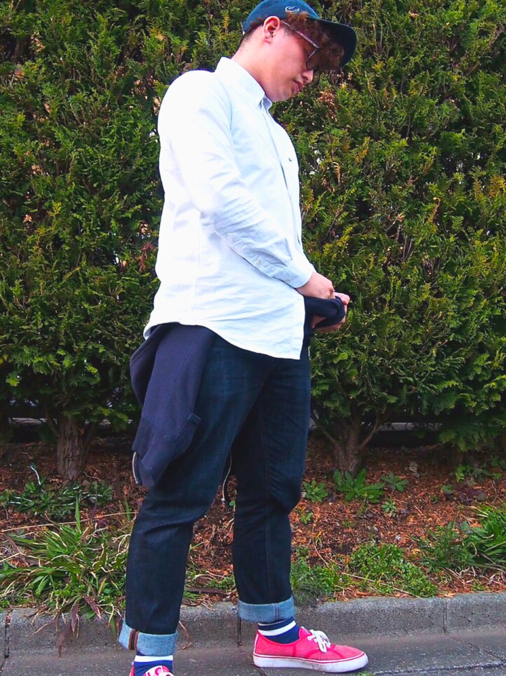 こんにちは! 初投稿になります! ラコステ羽田空港店の大瀧です! 本日より各週で皆様にお届けしたいのは、 ズバリ、シャツ特集でございます! 僕の大好きな、定番のオックスシャツをシンプルかつおしゃれに着こなす術をご紹介致します! 本日の投稿は天気が良かったので、近所の公園へ! 濃い目のデニムと白シャツの組み合わせです! マリンテイストでまとめてみました! 少しロールアップして、靴下のボーダーもシャツとデニムの色味にあっていて、おしゃれです! こういったシンプルな着こなしの時は小物で差を つけます! そこで、皆様にオススメしたいのが、このキャップ! シンプルかつ、おしゃれなデザインでマリン感もあるので、個人的に1番お気に入りです! そして、最後に、ワンランク上のコーディネートポイント! 中にTシャツを着て、ボタンを上から2つだけ締めて、下を開け放します! これだけで、西海岸風のおしゃれ感が一気に漂いますよ! それでは、また来週! 次回のシャツは黄色! お楽しみに…!!!