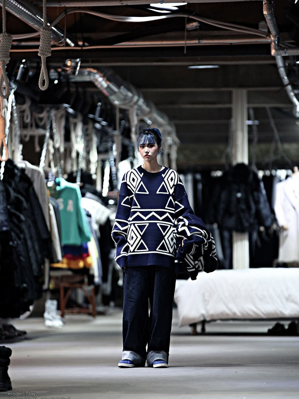 BytheR_JPのニット/セーター「エスニックパターンルーズフィットクルーネックニットセーター」を使ったコーディネート