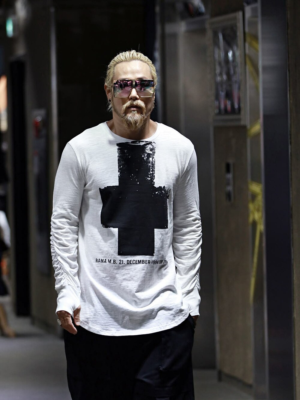 BytheR_JPのTシャツ/カットソー「クロスプリント袖ギャザーTシャツ 」を使ったコーディネート