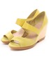 足元はビタミンカラーのウェッジサンダルに靴下合わせで遊び、コーディネートはマニッシュ系テイストでまとめました。