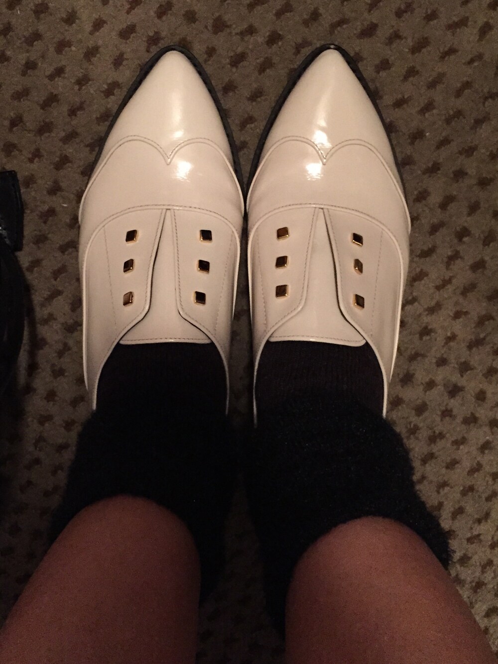真っ白なマニッシュシューズにゴールドは女らしさを不思議に引き出します