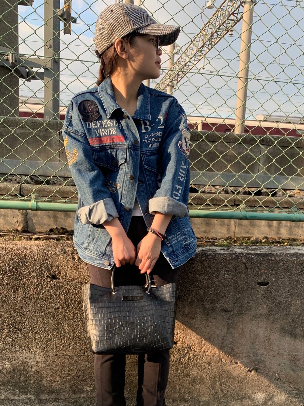 CHIPCHIPのトートバッグ「【直営店限定】クロコ型押しレザーバック/ LETHER TOTE BAG」を使ったコーディネート