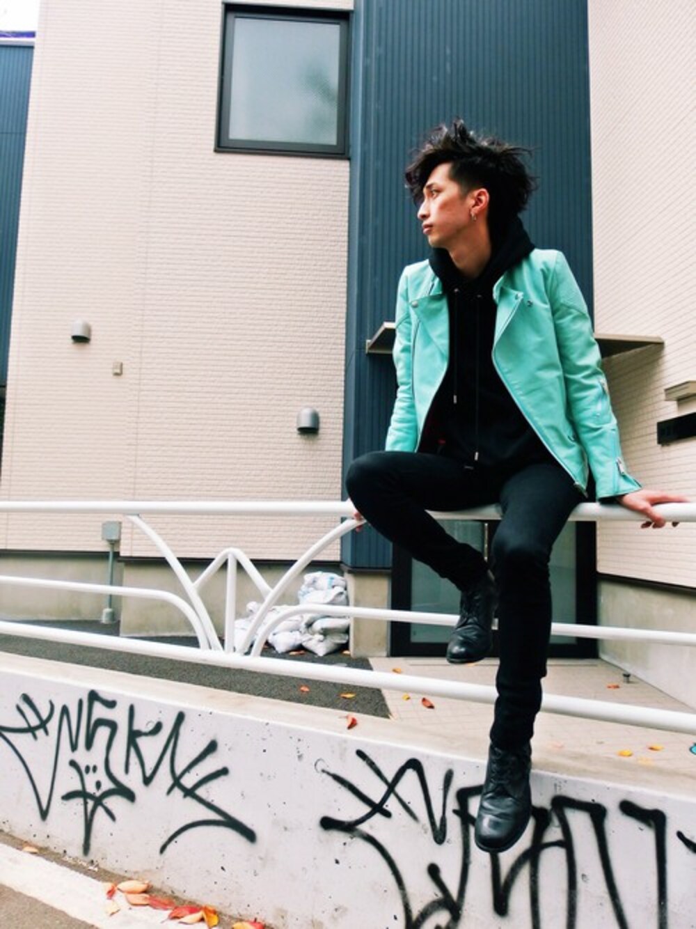 アウターはMotorcycle Leather Jacketを。 カラーの方は、BLK/MGRをご用意しております。 さし色としてミントグリーンを合わせてみました◎ この色のレザーは中々無いかと!気になる方是非店頭へ!!!! インナーには普段から愛用しているベーシックなプルオーバータイプのパーカー。 肩口に同色で施されたパイピングがさり気ないアクセントになっています。 一枚でもインナーでも幅広く着回せるアイテムです。 ベーシックだからこそ必需品のアイテムです!!! 足下にはカウレザーを使用したコンバットブーツ。 無骨な印象のアイテムながらも細めのラストと高めのヒール設定にすることでシャープな印象をプラスしました。 ベーシックなデザインなので、多様な着こなしに対応する汎用性も兼ね備えています。 原宿へ来られた際は是非CHRISTIAN DADA 本店へ! スタッフ一同お待ちしております★
