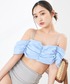 着るだけで綺麗なオフショルスタイルが完成する水着のセットアップ。 裏地とパンツはニット生地で着心地抜群! オフショルは二の腕をさりげなく隠してくれて、パンツもハイウエストだからスタイルアップできちゃいます♡