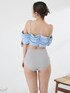 CELEN_STAFF(CELEN)の水着「【swimwear/体型カバー】ボリュームフレアビキニ オフショルダートップス・パンツ 2点セット」を使ったコーディネート