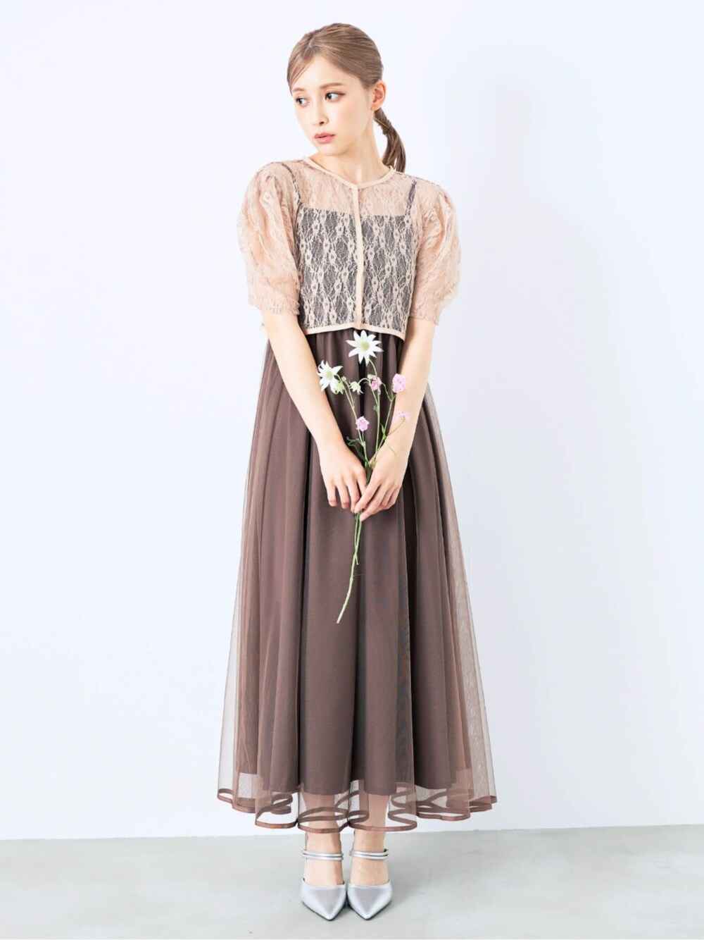 CELEN_STAFF(CELEN)のドレス「《2025新作》【オケージョンドレス/結婚式/お呼ばれ】2WAYレースボレロ付きチュールフレアドレス 2点セット」を使ったコーディネート