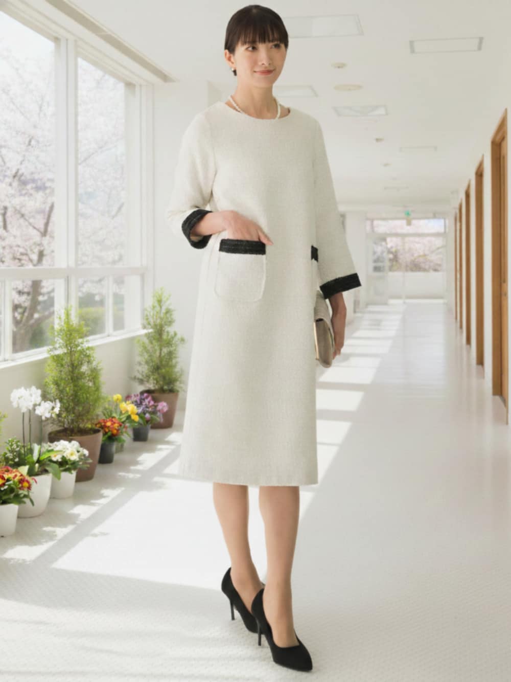 CELEN_STAFF(CELEN)のスーツスカート「【洗える/セレモニースーツ/ママスーツ】バイカラーツイードワンピース 単品」を使ったコーディネート