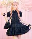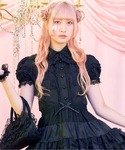 パニエをスカートとして着こなす上級者コーデ♡ フリルとレースが特徴的なパニエは、パフスリーブが可愛いブラウスと合わせてスタイルアップ。 Blackコーデが様になるロリータスタイルです♪