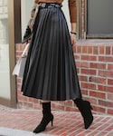 ディーホリック(DHOLIC)のスカート「レザー調ウエストゴムプリーツスカート」を使ったコーディネート