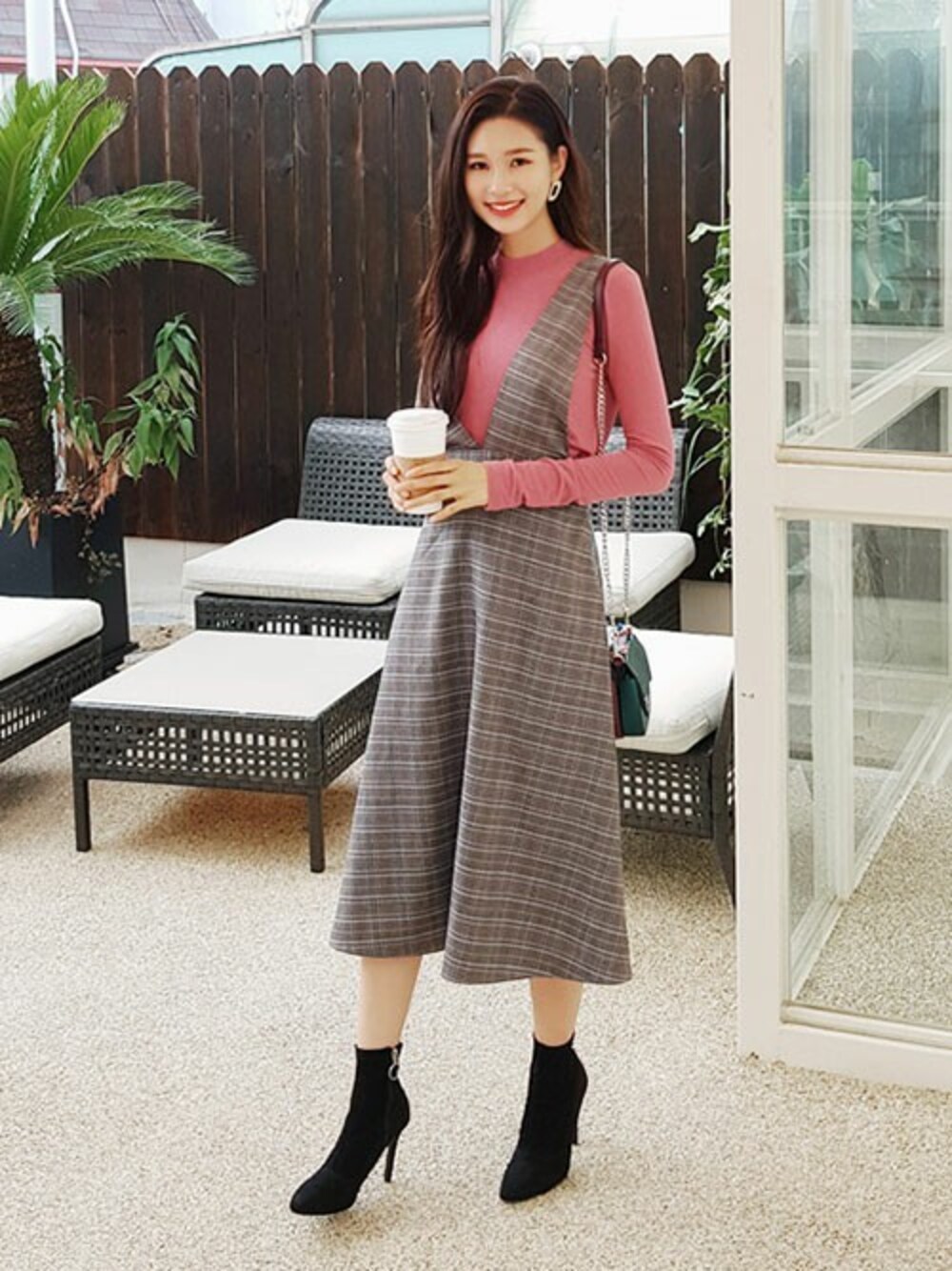 ディーホリックのワンピース「Vネックスリーブレスチェックワンピース」を使ったコーディネート