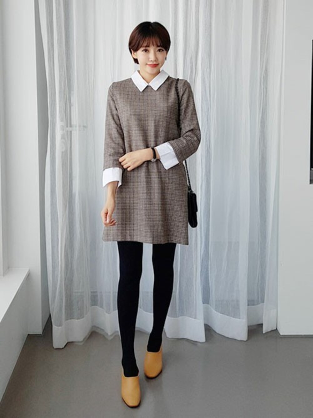 ディーホリックのワンピース「ホワイトカラーチェックミニワンピース」を使ったコーディネート