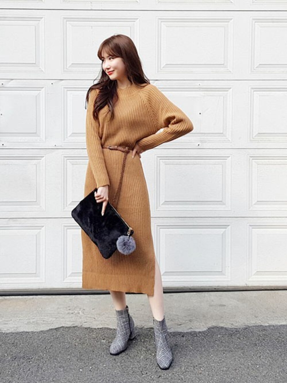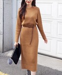 ディーホリックのワンピース「ベルトSETラグランリブニットワンピース」を使ったコーディネート
