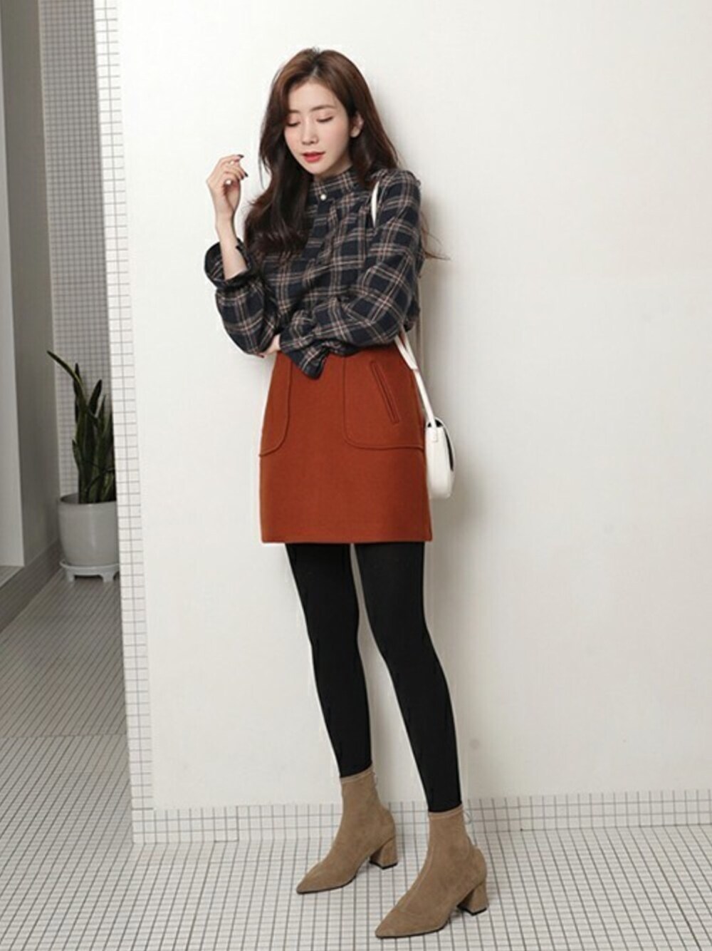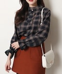 ディーホリックのシャツ/ブラウス「ネックディテールチェックブラウス」を使ったコーディネート