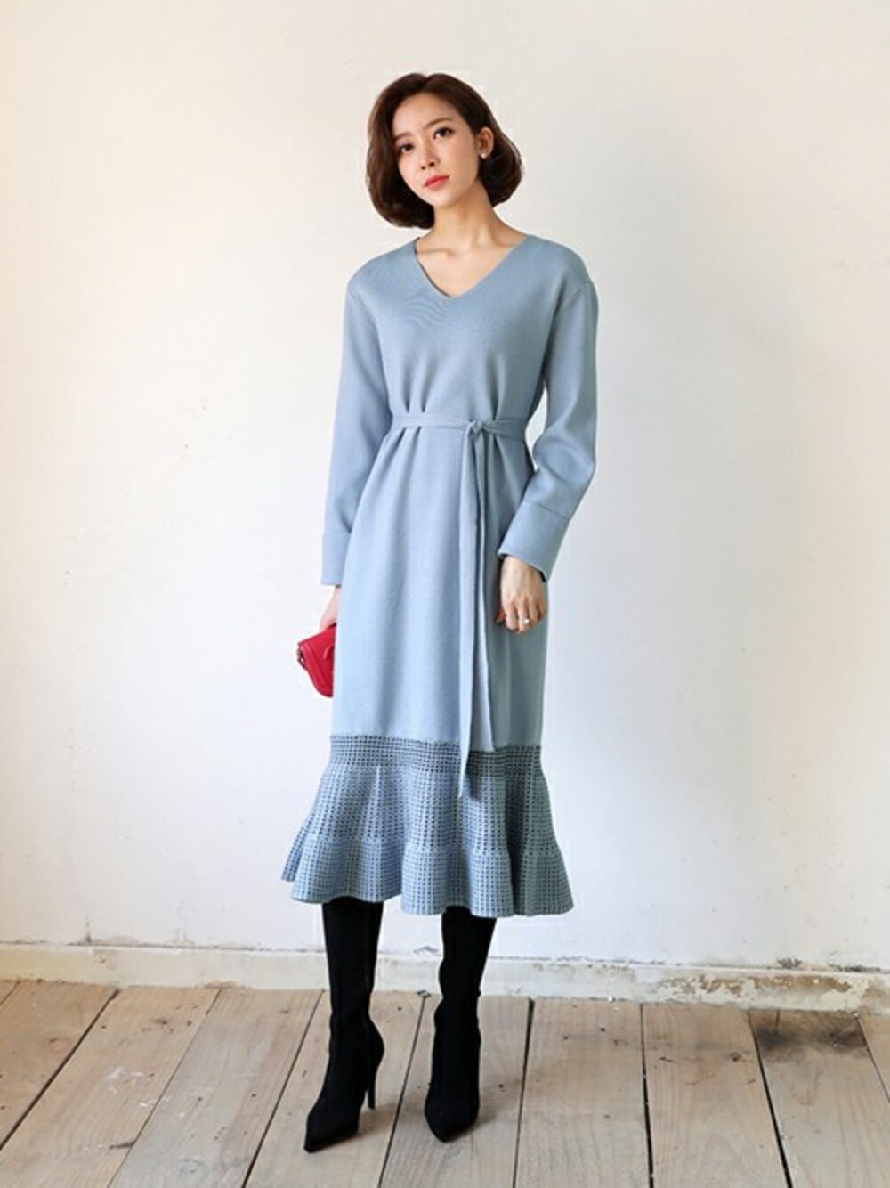 ディーホリックのワンピース「ストラップSETパンチングヘムニットワンピース」を使ったコーディネート