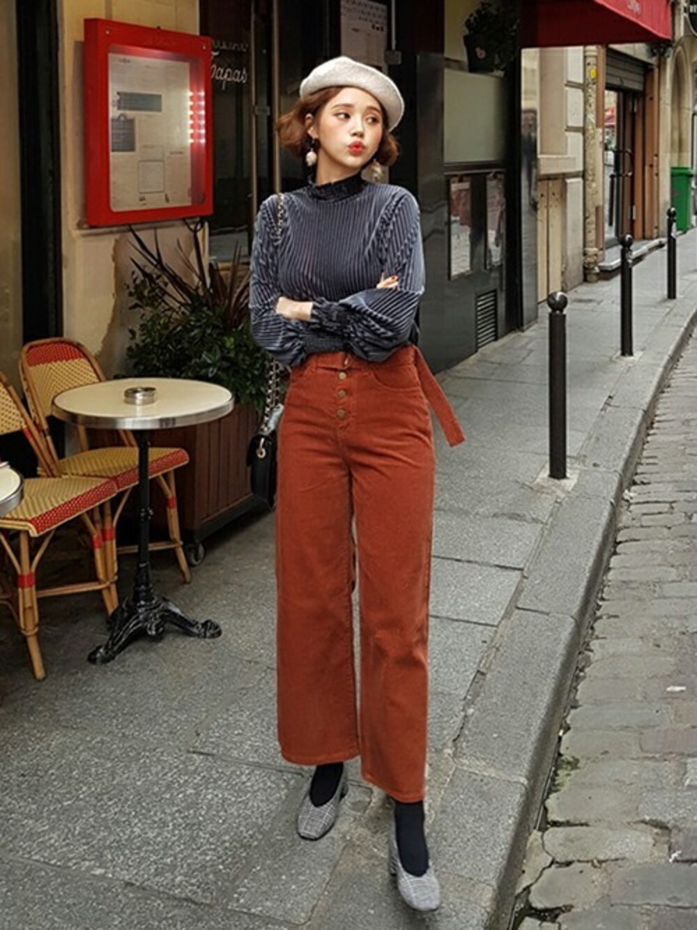 ディーホリックのシャツ/ブラウス「ハイネックプリーツベロアブラウス」を使ったコーディネート