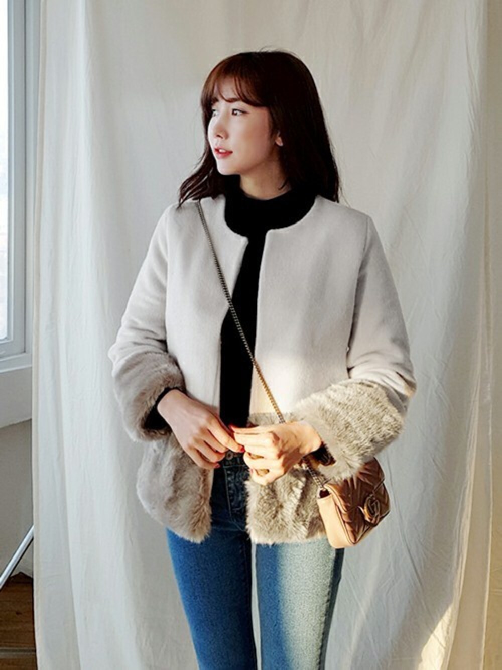 ディーホリックのその他アウター「ファーヘムオープンジャケット」を使ったコーディネート