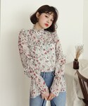 ディーホリックのシャツ/ブラウス「フリルフローラルボタンブラウス」を使ったコーディネート