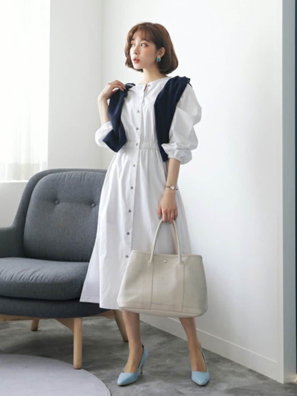 ディーホリックのワンピース「ウエストゴムボタンワンピース」を使ったコーディネート