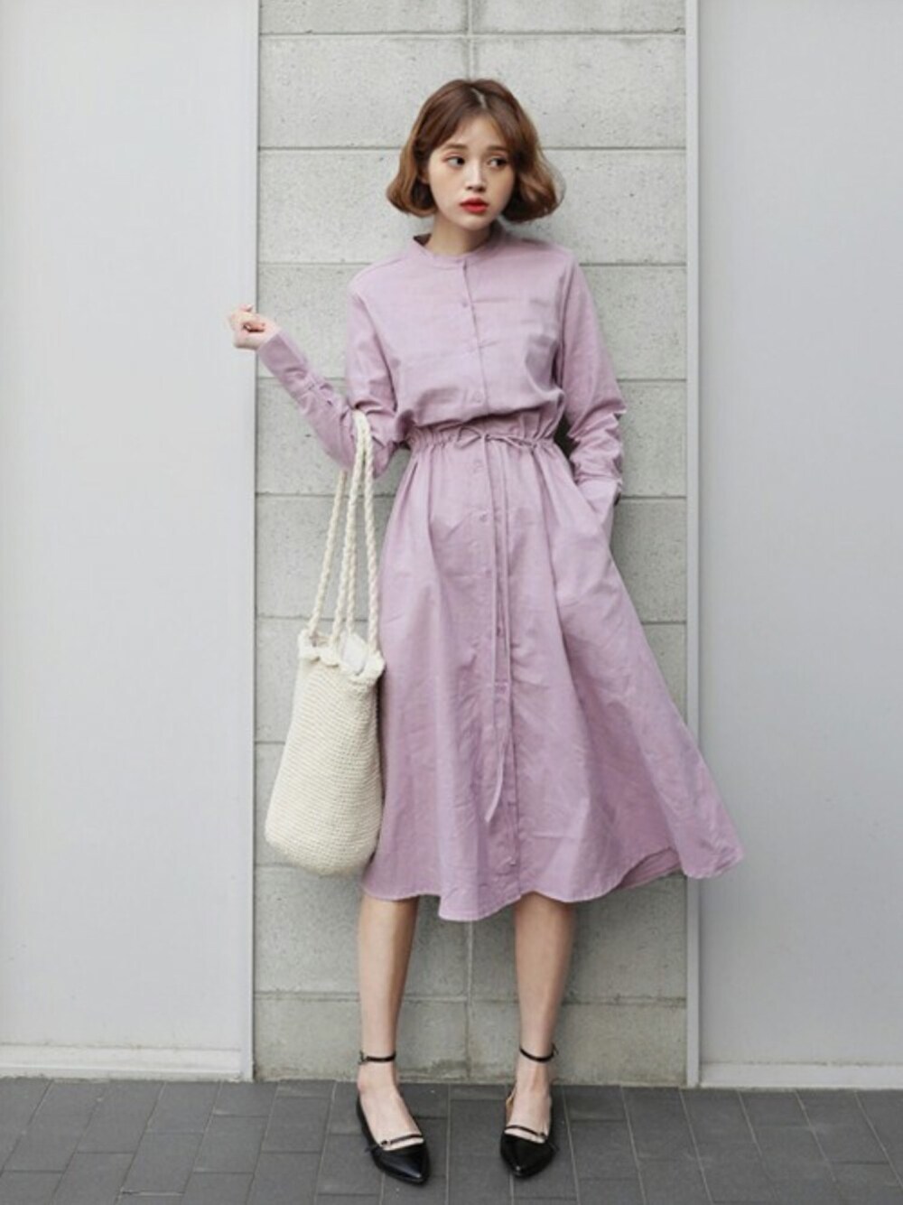 ディーホリックのワンピース「バンドカラーロングワンピース」を使ったコーディネート