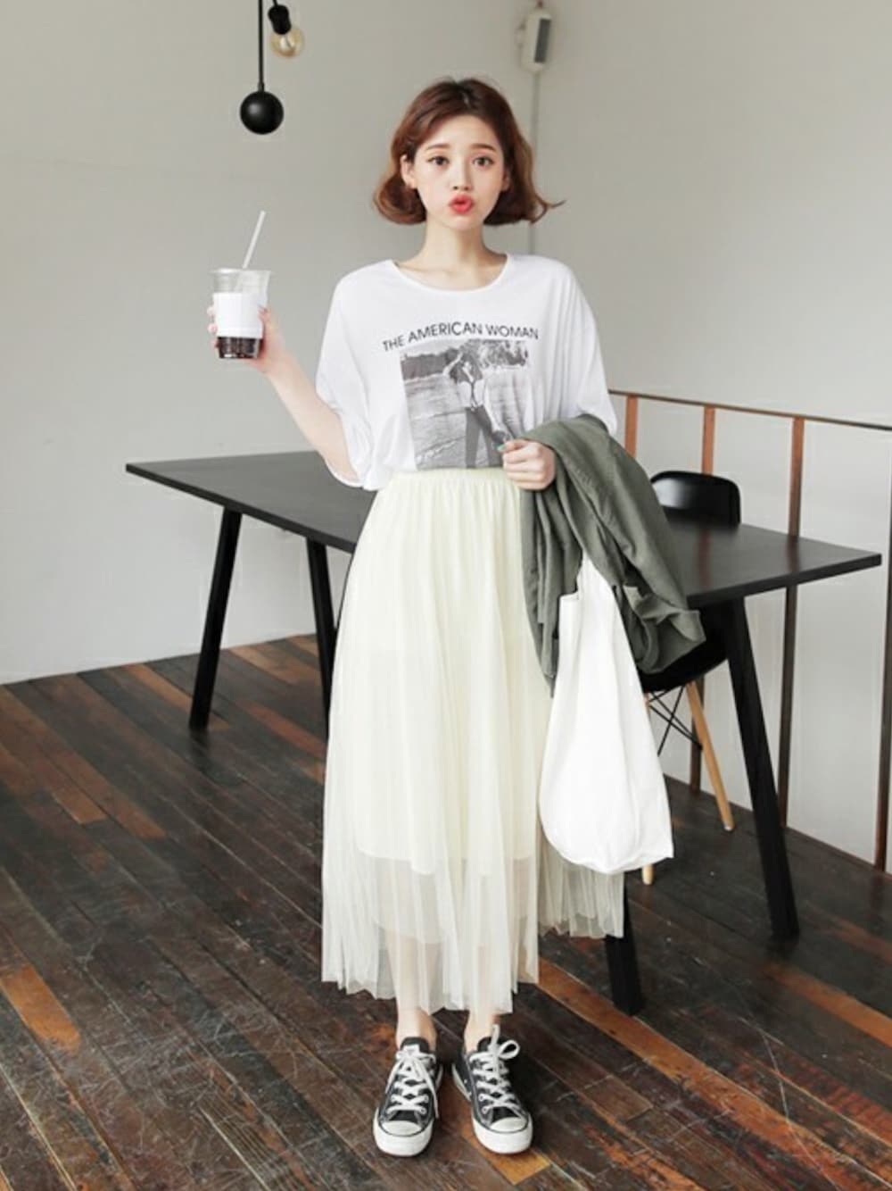 ディーホリックのスカート「プリーツチュールスカート」を使ったコーディネート