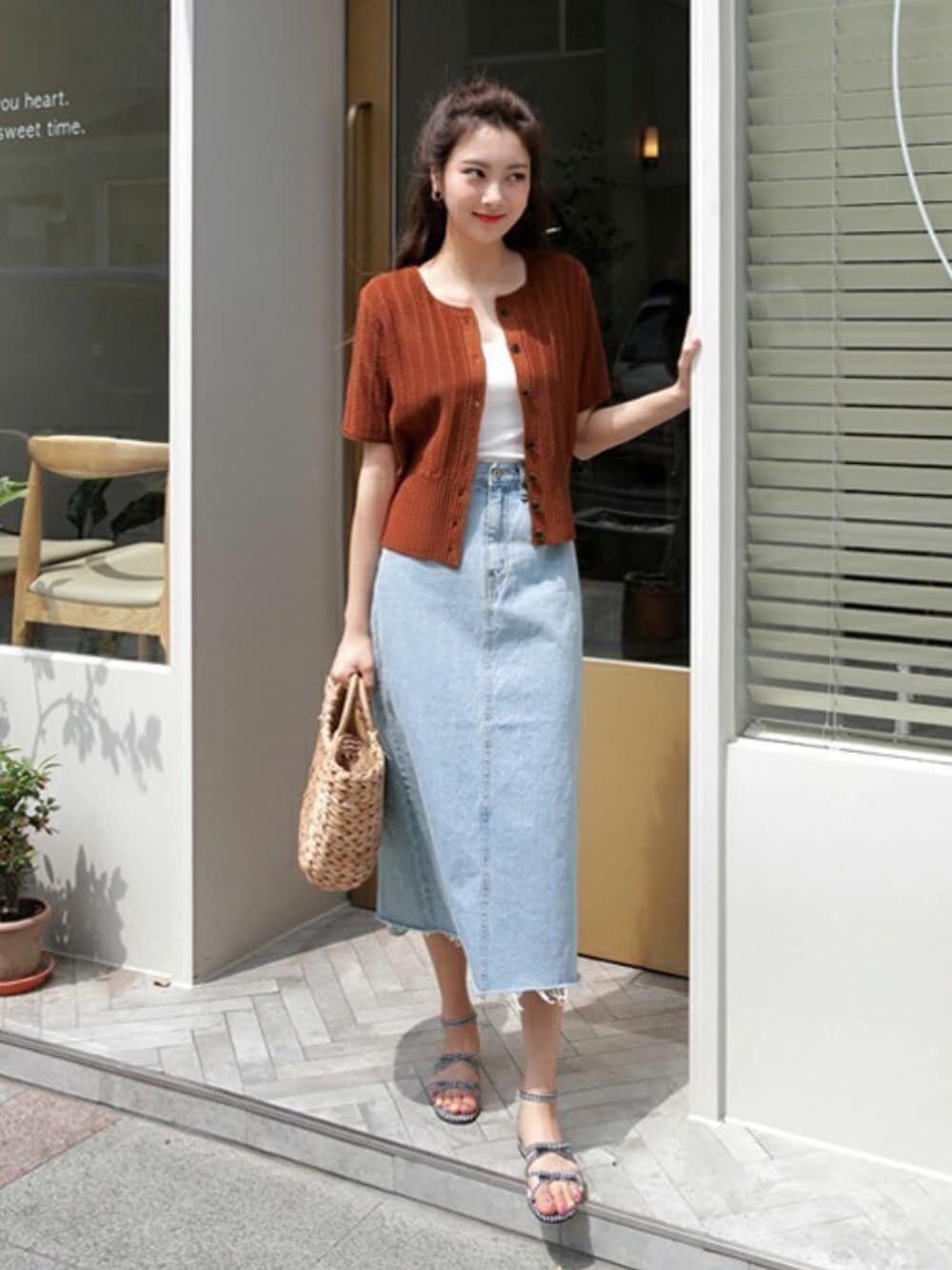 ディーホリックのカーディガン/ボレロ「リブヘム半袖ニットカーディガン」を使ったコーディネート