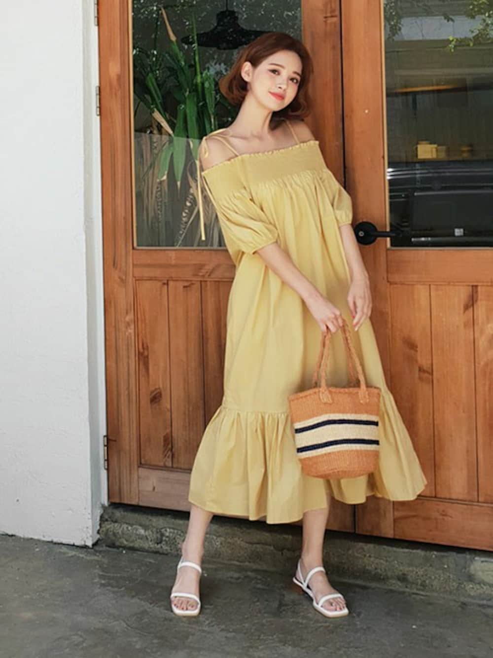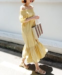 ディーホリックのワンピース「シャーリングオフショルワンピース」を使ったコーディネート